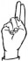 На ћирилици написано ВАЊА ЛУДОШКИ састоји се из 11 слова [?]. Исписано ћириличном једноручном азбуком за глувонеме: